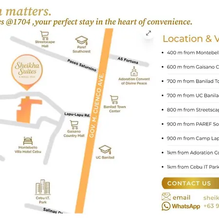 Offering a private swimming pool, Sheikha Suites Cebu is located a 6-minute walk from the expansive shopping center "Gaisano Country Mall". This apartment offers private car parking on site and modern comforts like Wi-Fi.